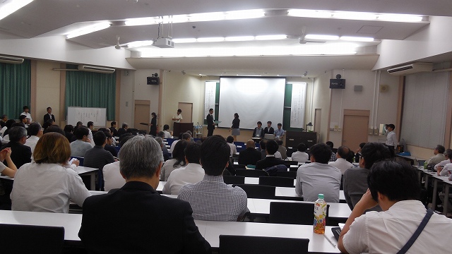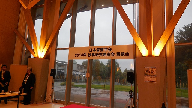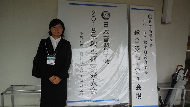 日本音響学会 2018秋期研究発表会でM2のT口さんが,音響計測の研究で「ハーフ・ストップ奏法による開口率変化がホーンモデルの共鳴周波数に及ぼす影響」という題目で音響計測の発表をおこないました.2年前は聴講でしたが,今回は自分で立案したテーマを発表です.写真はT口さん. |