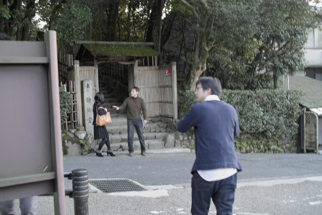 詩仙堂で観光客がカップルに写真を頼まれました |