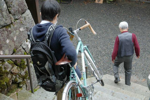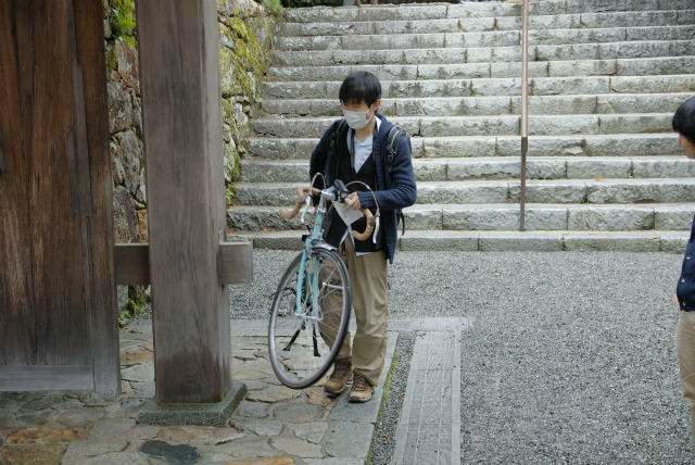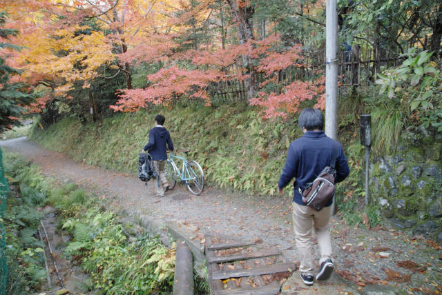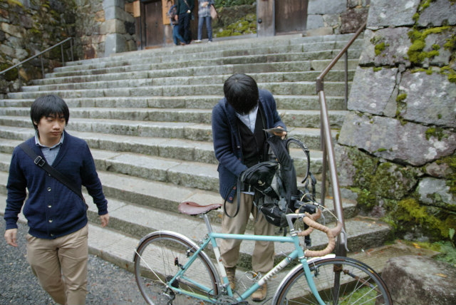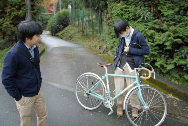 去年から新規開拓が続いていて,朝9時スタートで大原へ行って4コマの授業までに帰ってくるプラン.M2のTNくんはBianchiで現地集合.M1のHくんと助教の人はバスで移動.M2のTMくんは後で現地合流. |