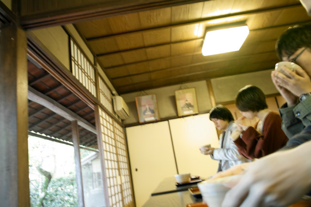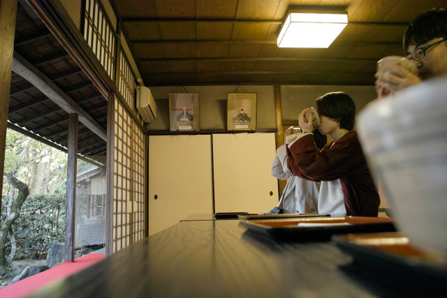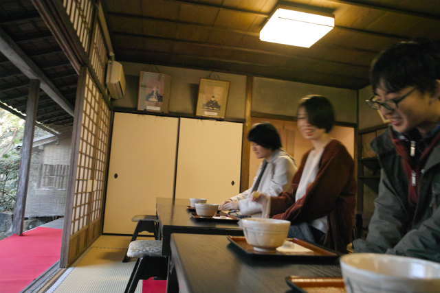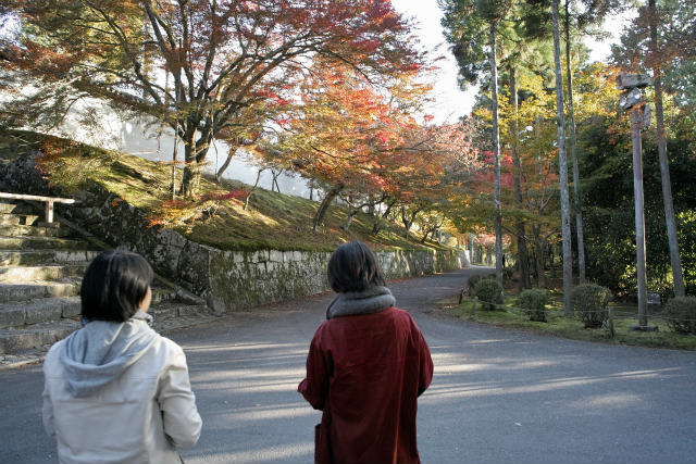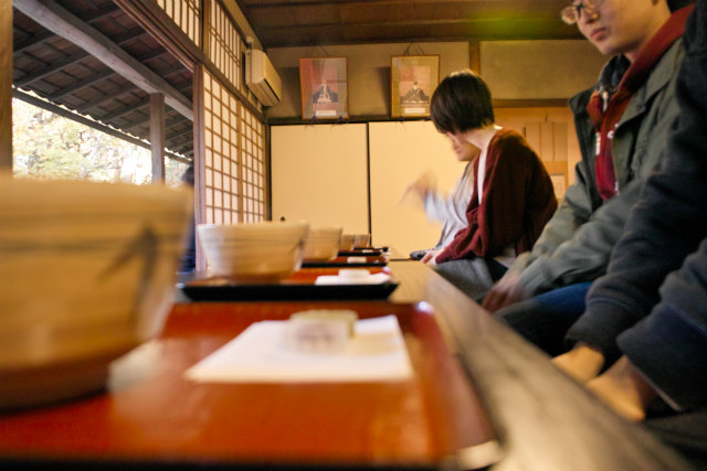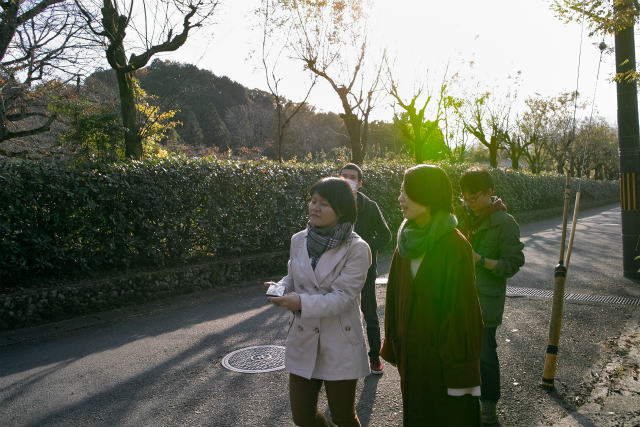 去年は大原でしたが,今年はいつもの曼殊院へ.M1有志で徒歩移動です.だいたい30分ほどで着くのですが,ヒール的なのはしんどいとのこと.運動靴は研究室に置いておいて下さい. |