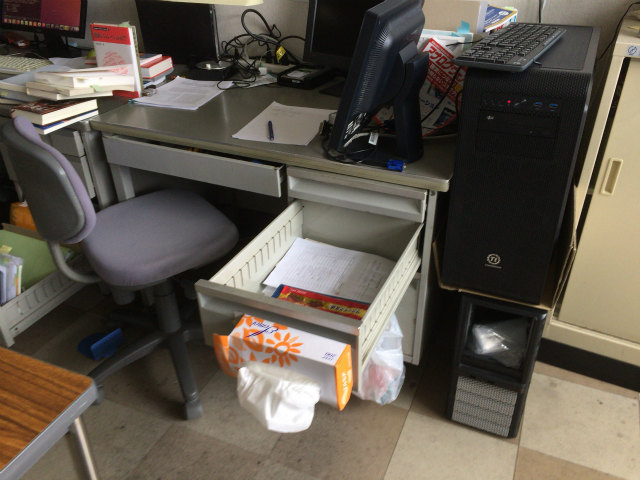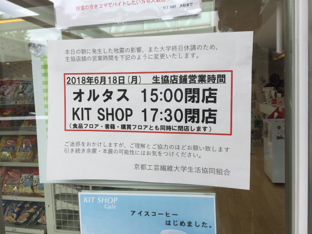 学生,教員とも無事.5階の研究室は引き出しが開く程度,実験室の装置は異常無しでした.大学は終日休講です. |