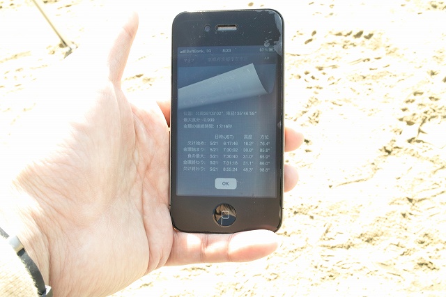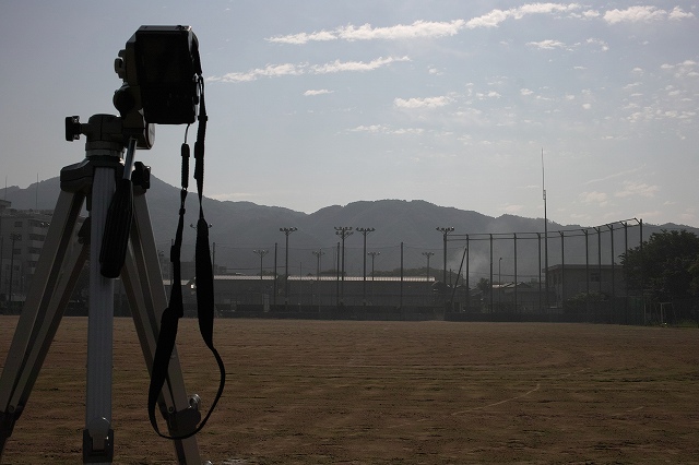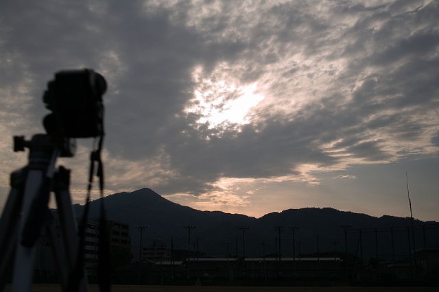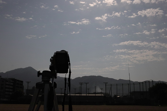 6時にグランド集合ということでしたが、まぁ助教の人だけです。インターバルタイマを使って、動きのある写真が撮りたかったそうで、最初から終わりまで観測してました。他のみんなは自宅や夢の中からです。 |