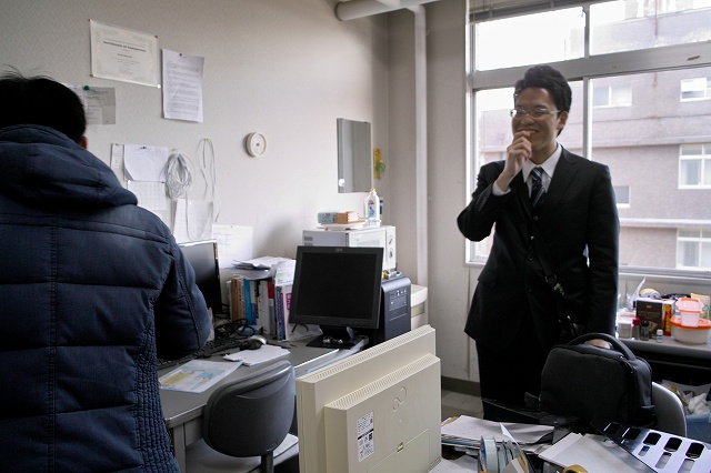 平成最後の学部卒の平成最後の入学宣誓式です。去年は3人でしたが、今年は5人です。 やっぱり4人以上居ると学生間で議論や相談ごとがはかどります。あと学部取得分の単位認定の手続きが簡単になったそうです。 |