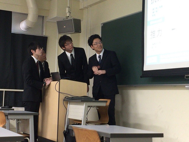は4人で今年も4人。今回はロコモーションが増えて計測・制御系の5研究室合同です。それぞれがなかなかの力作ぞろいでした。 修士での活躍が楽しみになります。