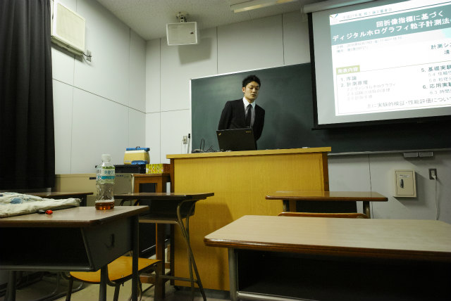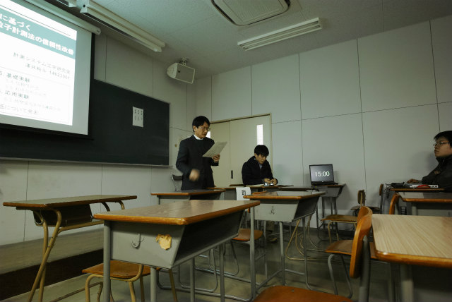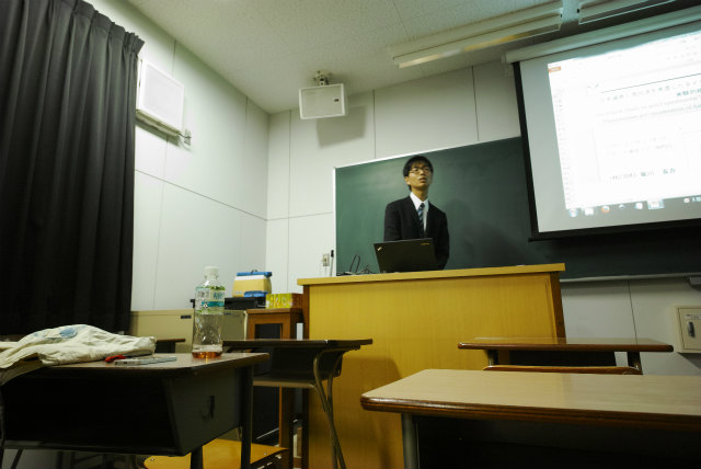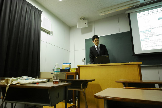 去年は4人でしたが,今年は2人発表です.A井くんもShogoも論文,国際会議,国内発表,加えてそれぞれに受賞と特許ありという充分な実績を背景に,主査・副査の先生との質疑応答は非常にスムーズでした.緻密に構成されたスライドのA井くんと簡潔なほのぼの挿絵付きスライドのShogo.質疑応答は正反対で,簡潔に間髪入れず答えるA井くんに対して,Shogoは間を置いてじっくり時間をかけて答えていきます.ふたりとも学部,修士の3年間コツコツ研究をやっていたので,それぞれの発表スタイルが確立しています.やっぱり片手間に研究していては結果が得られないので,発表の機会がなくなります.発表経験を通してのみ個人の発表スタイルが確立します.ほどほどの研究なんか無いのです!結果は(以下省略 |