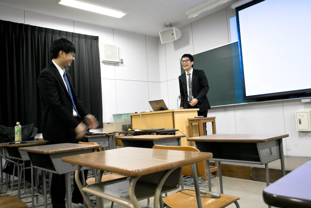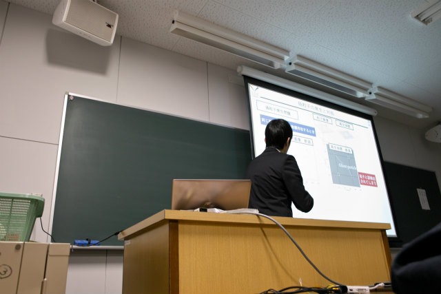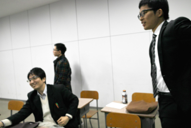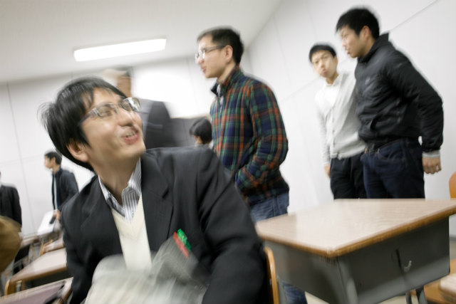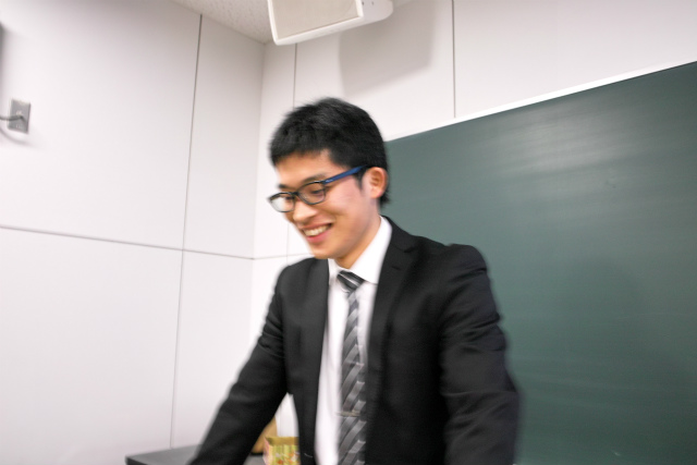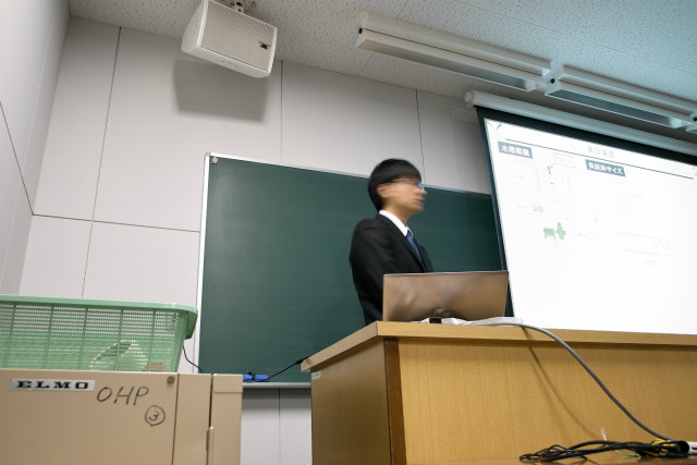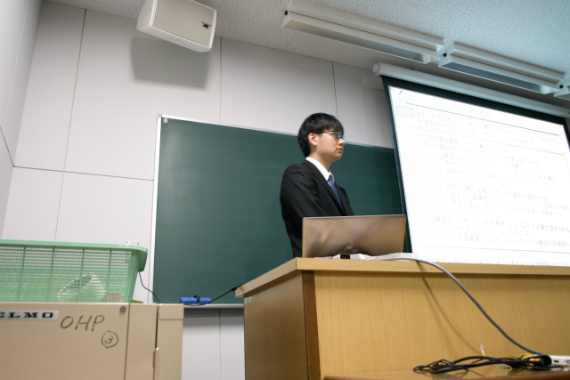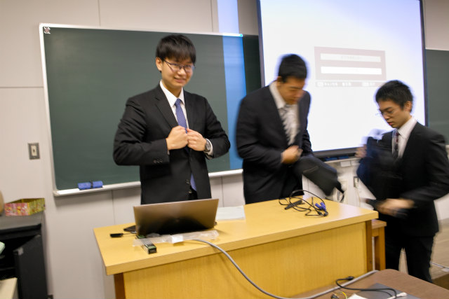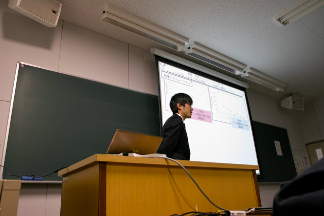 去年は2人でしたが,今年は3人発表です.それぞれ個性あって面白いです.Y西くんは手堅いプレゼン,TNくんは結果で押し切るプレゼン,TMくんはコミュ力高いプレゼンでしょうか.とにかく3人とも結果が豊富な発表でした. |