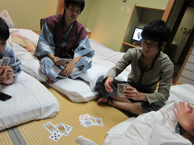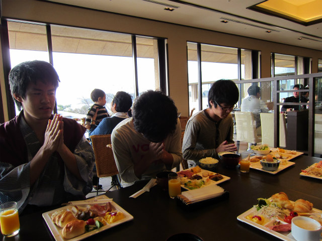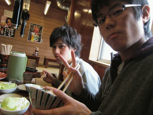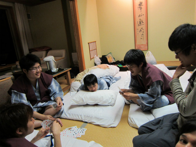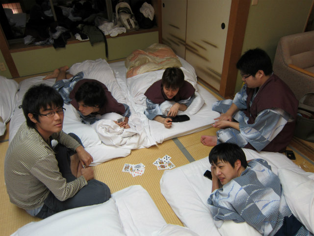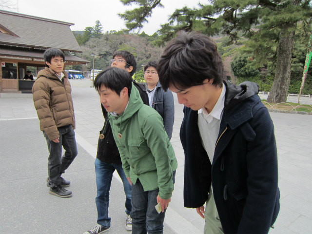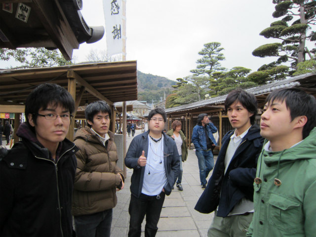 B4で連れだって卒業旅行に行ってきました。4月からH林くん以外は研究室に残るので、H林くんのH林くんによる?H林くんのための卒業旅行です。あまりに仲良さげなので、ホテルの仲居さんに「男子会ですか?」と聞かれたとか。楽しそうでなによりです。 |