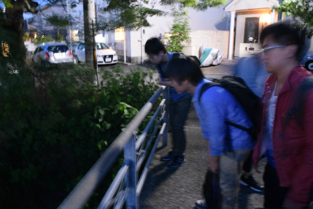 去年に引き続いて上旬に見に行きました.日没から10分後くらいに出て,疎水の奥まで行って戻るくらいに見え始めました.ちょうど8時頃がピークのようです.例年に無く飛んでいて見応えありました.風はありませんが,やはり20度弱と肌寒いです.今年はB4とM1のT口さんと助教の人と少なめの参加.M2は就活で全員休み.おそるべし超売り手市場... |