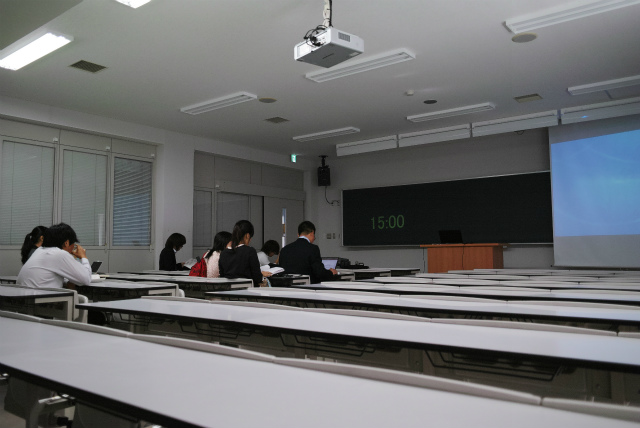 計時がプロジェクターで投影されているのが斬新 でもPCも要るしなぁ.研究室の発表でやろうかな. |