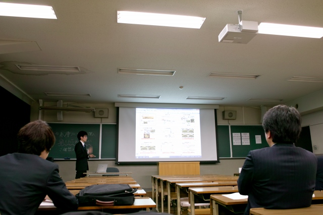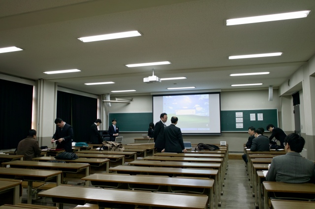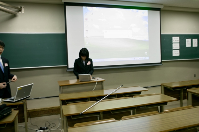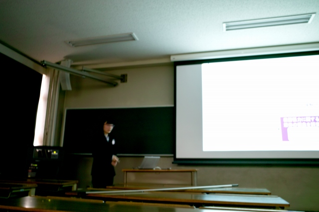 去年は3人発表でしたが、今年はK岡さん、K城くんの2人です。K岡さんは去年富山で発表してますし、K城くんは発表慣れしてるので安心して見てられますね。2人とも前日のお仕事の影響なしですね。 |