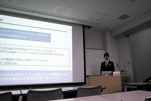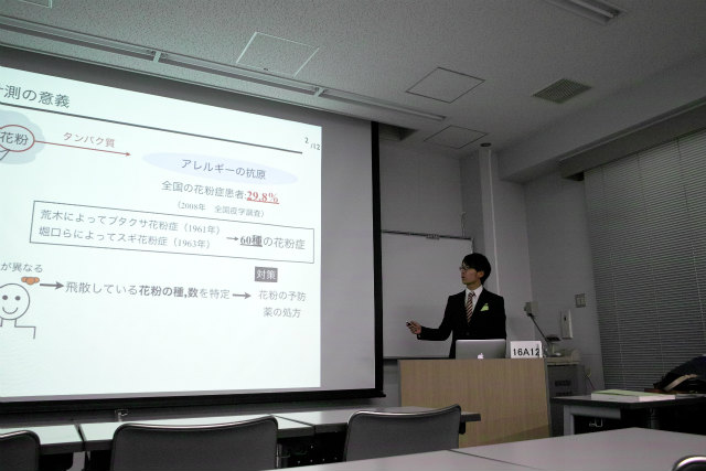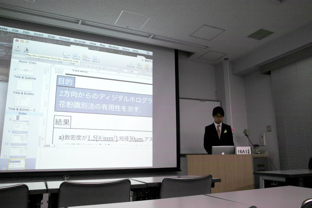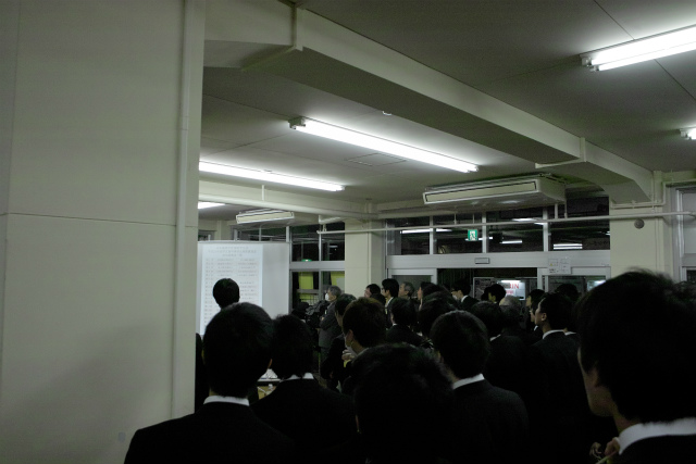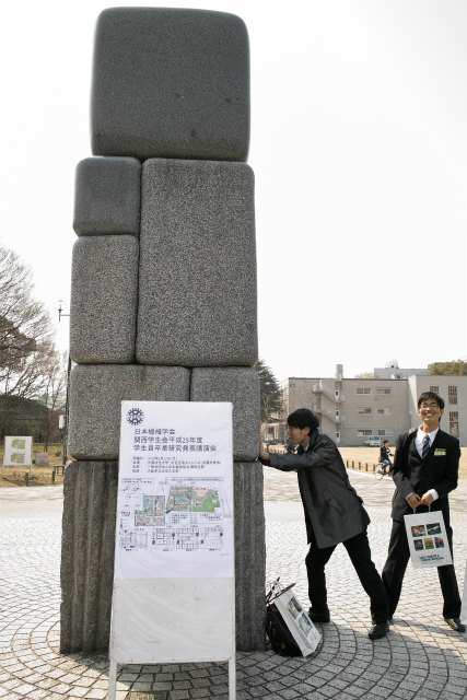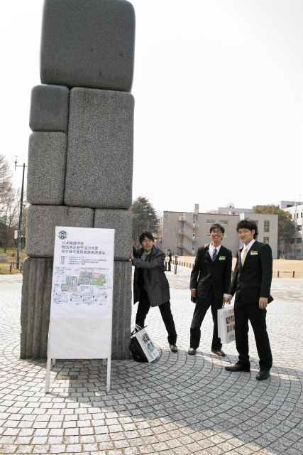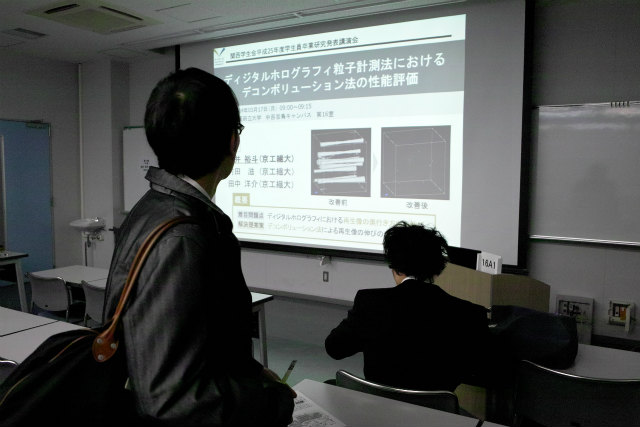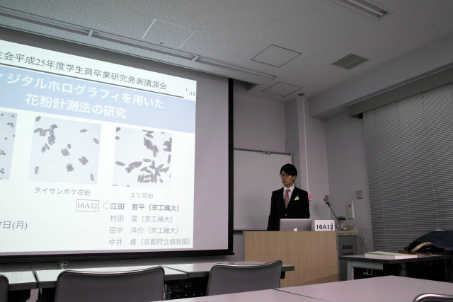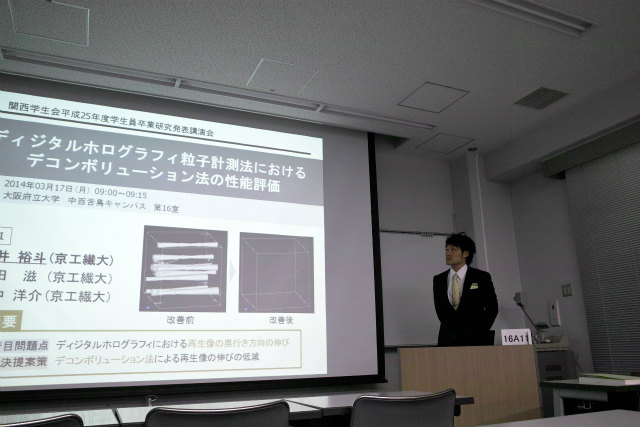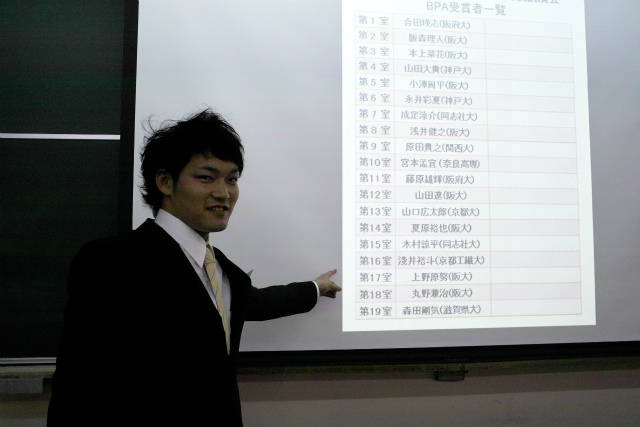 去年は6人発表でしたが、今年は3人です。それぞれ一番良い発表と質疑応答が出来たとおもいます。例年近畿圏の各大学から400件くらいの参加がある卒論講演は、関西支部の中でも一番盛り上がるイベントです。次はウチから近い京大の桂キャンパスです。 |