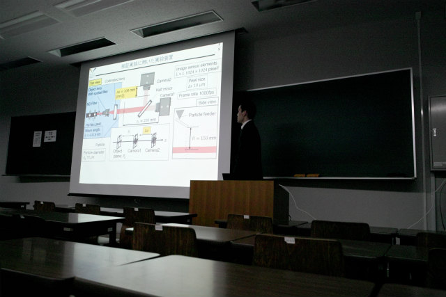 3月に開催された日本機械学会 関西学生会平成28年度学生員卒業研究発表講演会で講演を行ったB4の久保西くんが、BPAを受賞しました。題目は「位相回復ホログラフィを用いた微粒子計測に関する研究」で受賞です.谷くんに続いて2年ぶり4人目です.コツコツ準備していたのが良かったですね. |