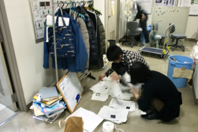 去年は忘年会と合わせてでした。先日の空調置換え工事後、すでに清掃はしたので、今回の大掃除は例年よりもガンバリました。掃除は清掃、整頓、破棄。今回は清掃、整頓だけじゃなく、ふるーいプログラム仕様書とか出力結果など、いつもなんとなく取り置いていたモノを破棄しました。各部屋スッキリです。やっぱり破棄するとスペースができるので、模様替えなど選択肢が増えます。 |