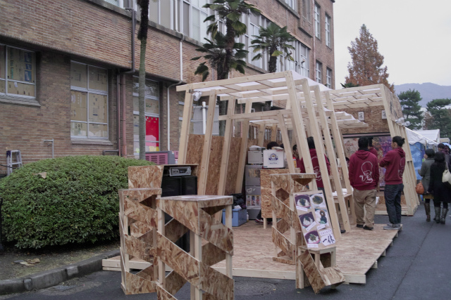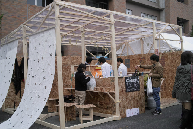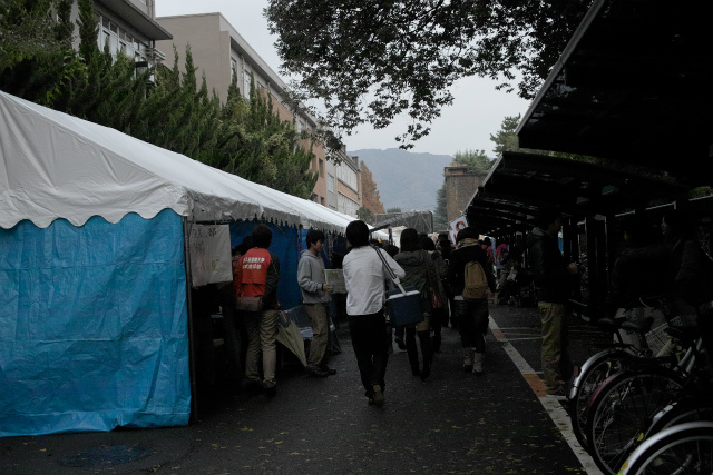 去年と比べると駐輪所が整備された関係で出店場所が変わりました。回遊性を考慮した順路にしないと10号館前の出店はしんどいですね。出足は初日なのかボチボチといったところでしょうか。さて中間発表まで1週間ですが、今年はだいたいの人の研究進捗が早いので、当日はグラフの1つでも無いと格好が付かない状況。でも無理して調整前の装置を稼働させたりして壊さないように! |