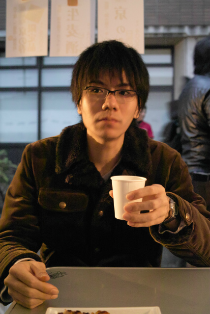実験合間の休憩中、K城くん |