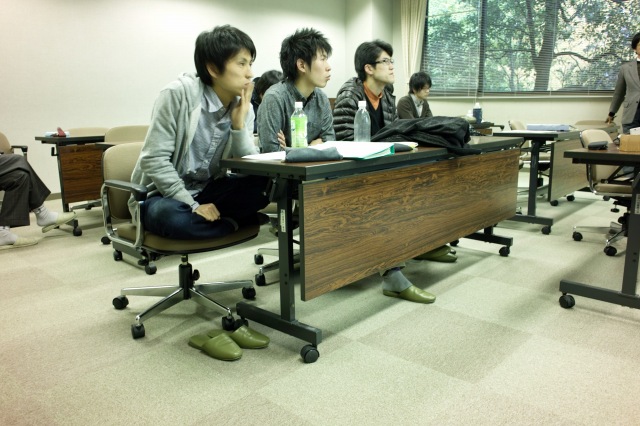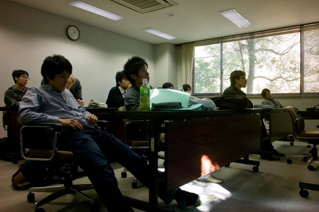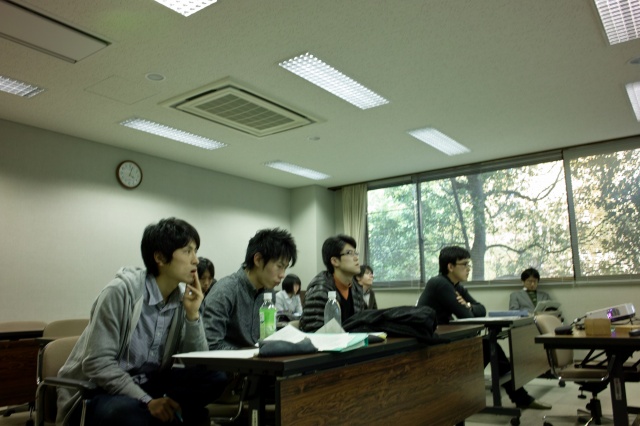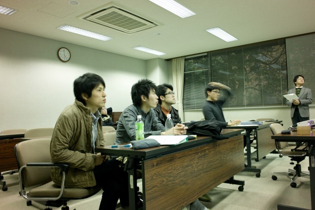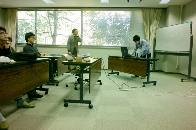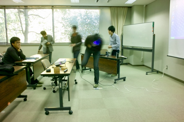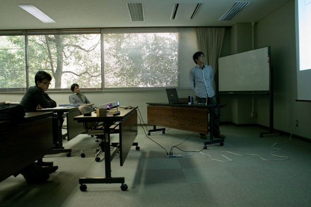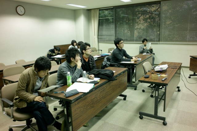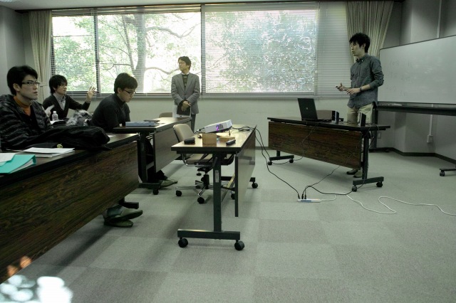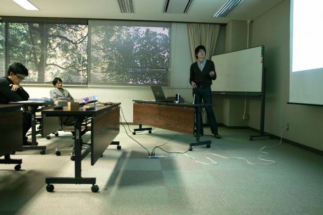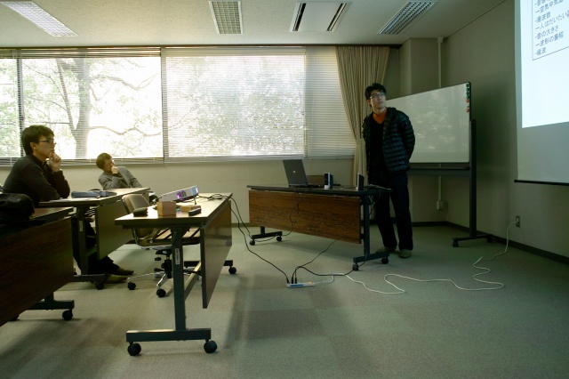 昨年は午前にB4が5人、午後にM1が5人中間発表でしたが、今年は午後にB4が3人、M1が4人中間発表でした。森西先生、B3の学生さん(入れ替わり立ち替わりで6人!)の参加ありがとうございました。さて、B4とM1はみなさん中間地点に到達したのでしょうか?B4は研究室以外の聴衆の前で話すのは初めて。ドキドキでしたね。M1はもう慣れてます。M2S浦くんは、修論審査会の事前プレゼンということで、副査の森西先生に来ていただきました。そして、B4アンケートの結果、中間発表BPA(Best Presentation Award)はK城先輩でした。やっぱ上手いです。最後に、もっとも質問回数が多かったのはM下くんでした。発表も大事だけれど、質問するのはもっと大事。これってBQA(Best Questioner Award)でいいのかな?なんかBBQみたい。 |