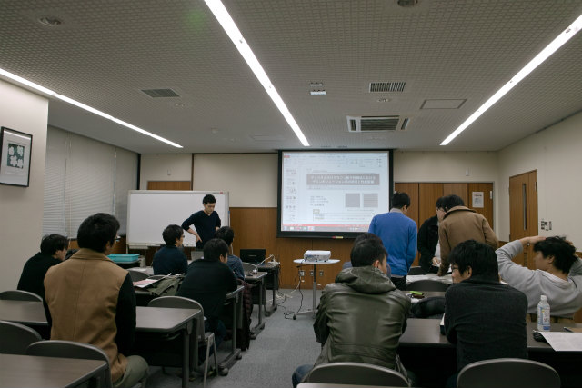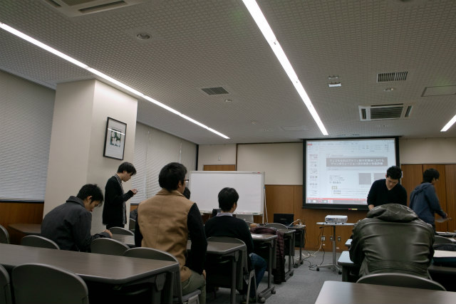 昨年は午前中にB4が6人、午後にM1が3人中間発表でしたが、今年は午後にB4が4人、午後にM1が4人全員発表です。B4についてはたぶんここ数年で一番はやい仕上がりなのかもしれません。M1も中間発表までに国内会議1人、国際会議2人発表済みとなかなかです。 |