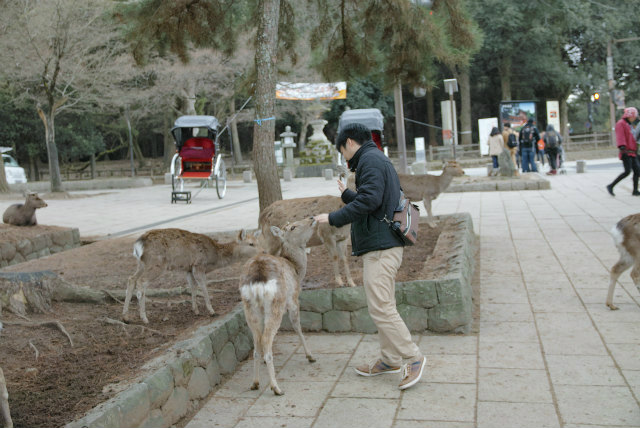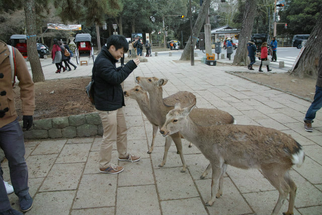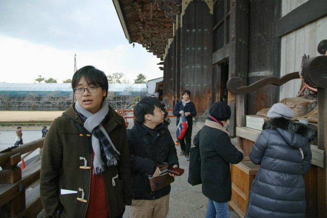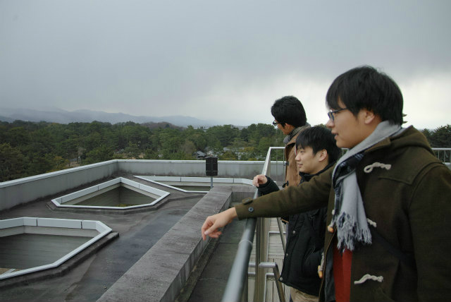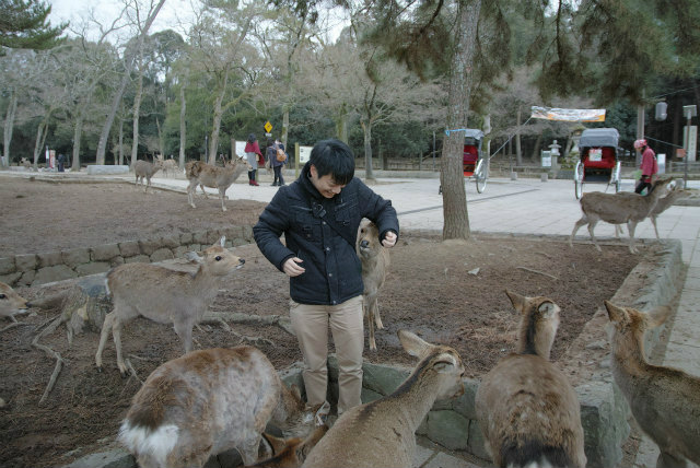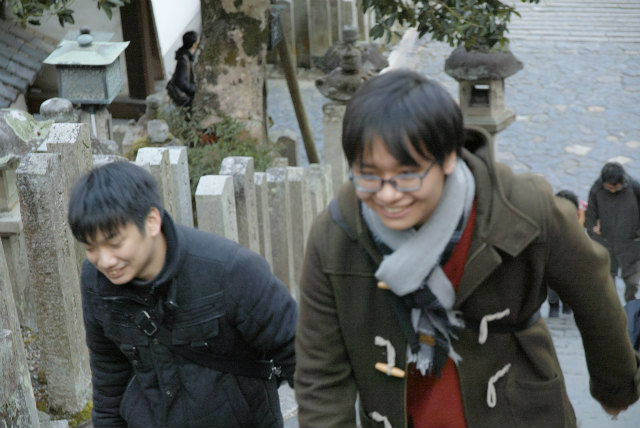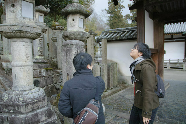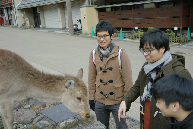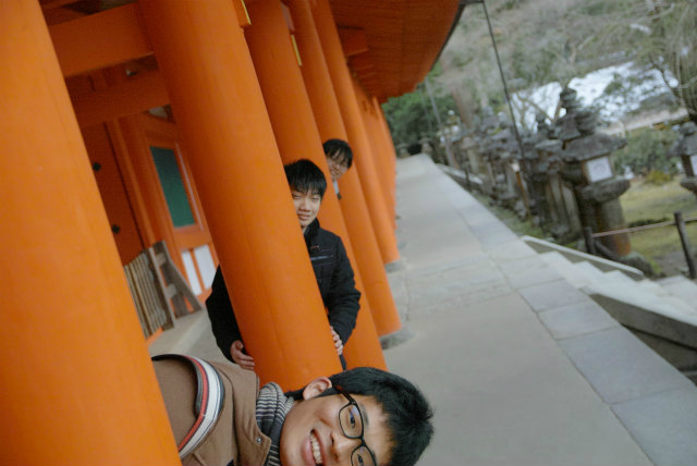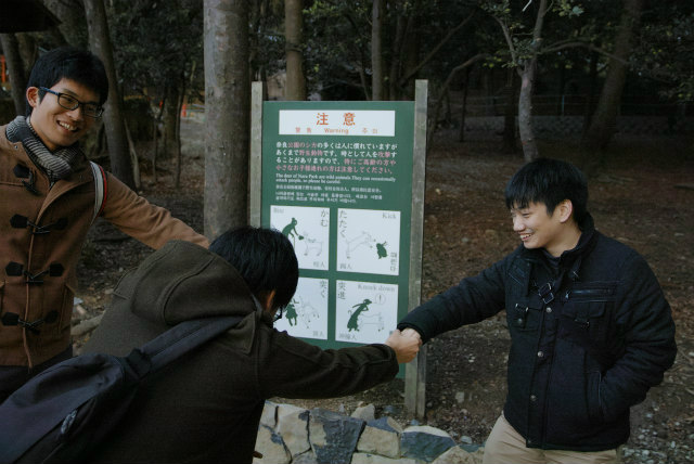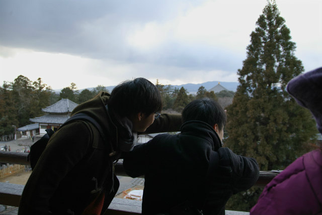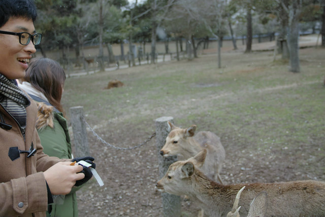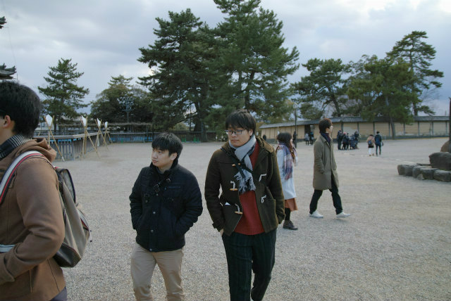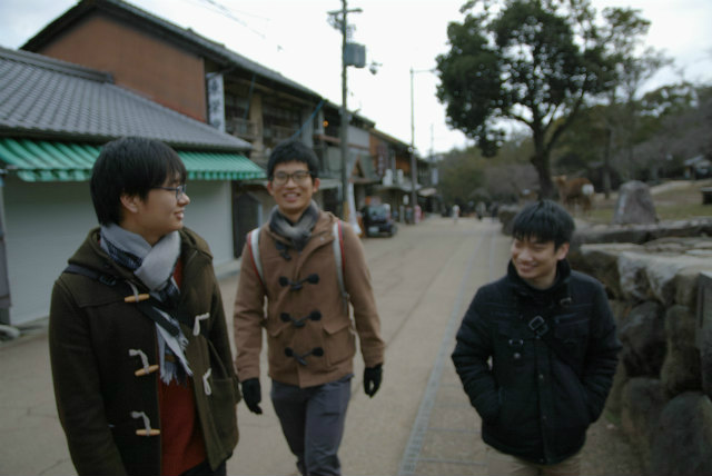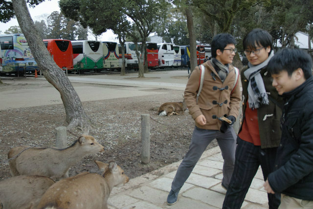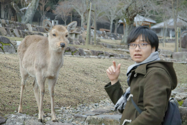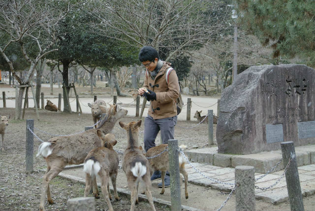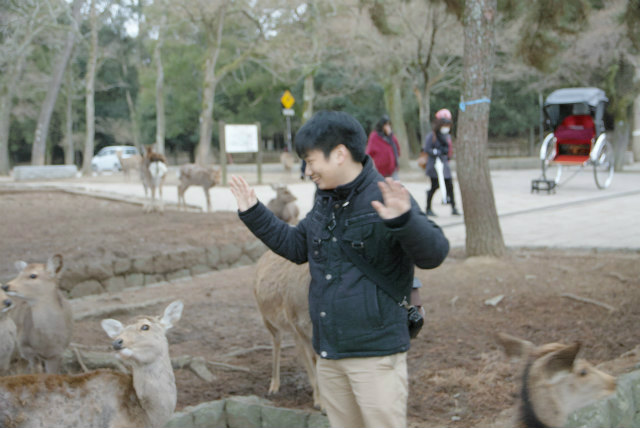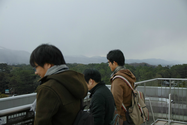 修論提出の翌日土曜日,気分転換を兼ねてFLUCOME以来の奈良へ.山口出身のM1のHくんは初奈良.地元M2のTMくんが案内してくれました.小一時間で松ヶ崎から奈良に直通なのは良いですね.ホログラフィの話をするにしても,実験時の条件決定や双画像問題とDOF問題に対するアプローチについてじっくり議論できますし. |