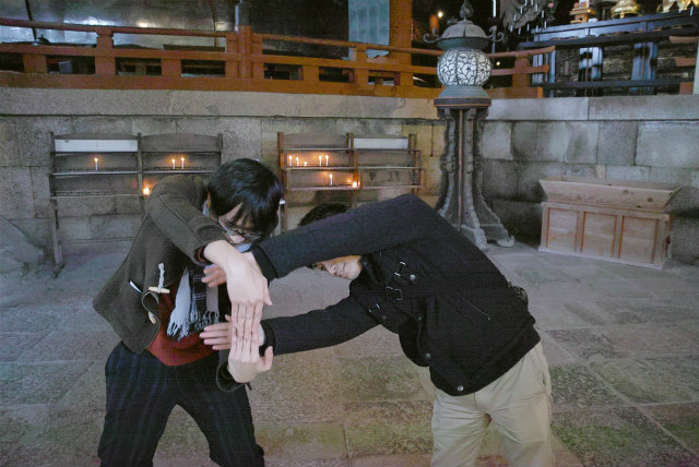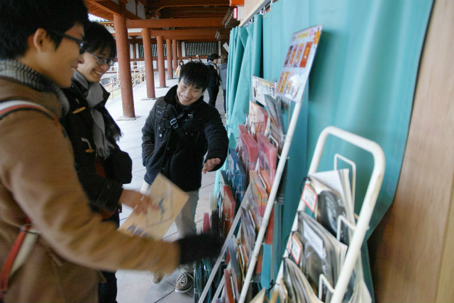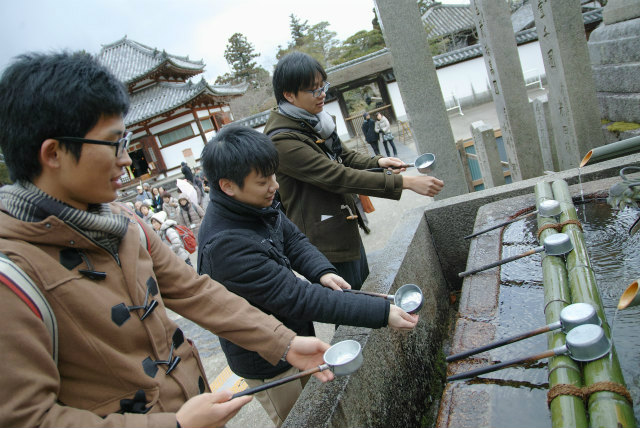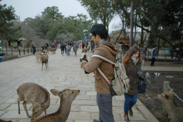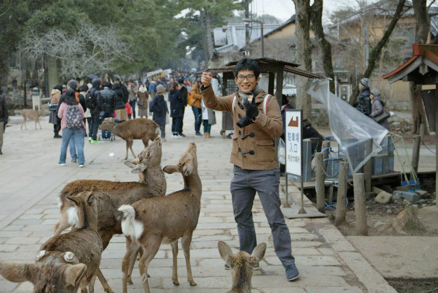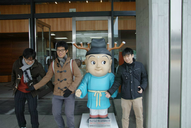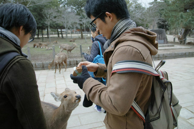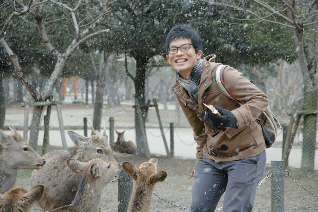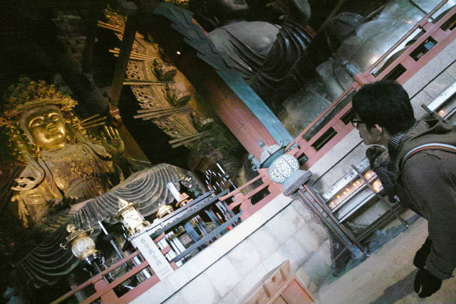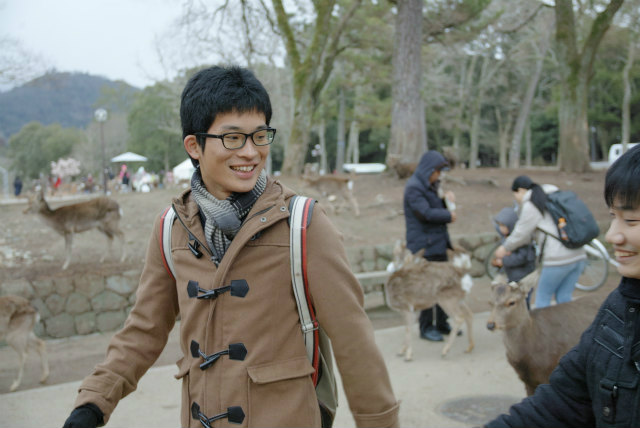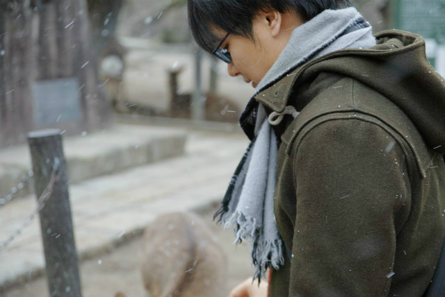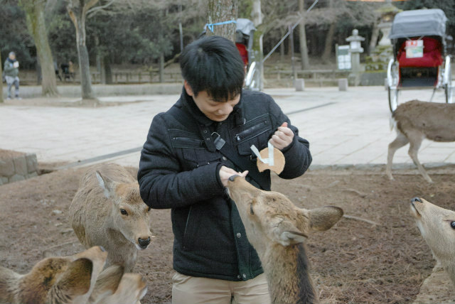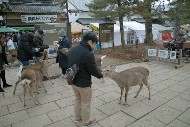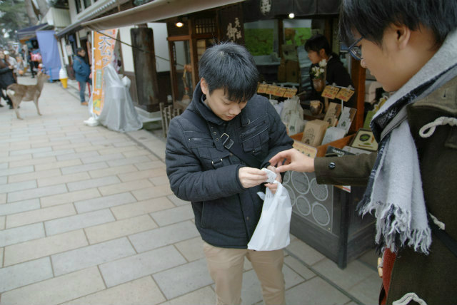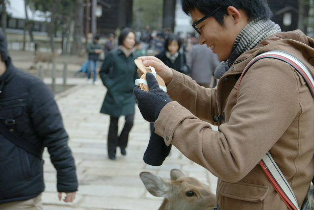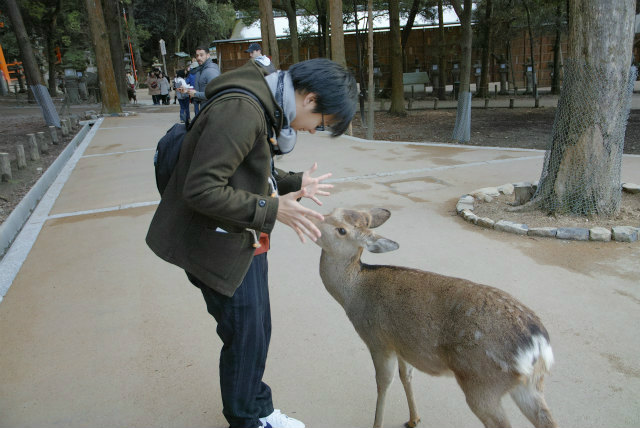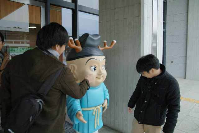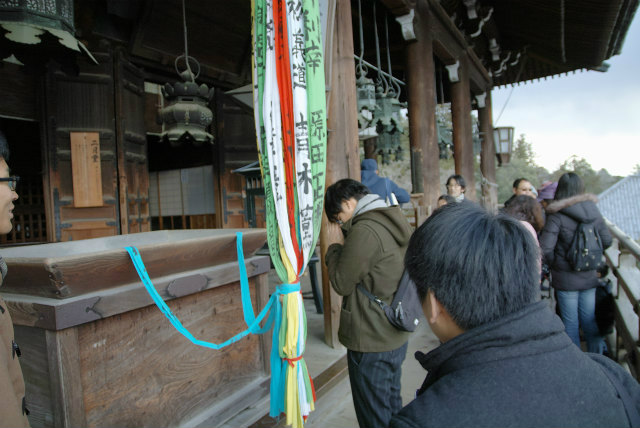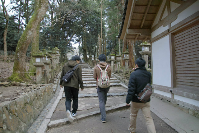 修論提出の翌日土曜日,気分転換を兼ねてFLUCOME以来の奈良へ.山口出身のM1のHくんは初奈良.地元M2のTMくんが案内してくれました.小一時間で松ヶ崎から奈良に直通なのは良いですね.ホログラフィの話をするにしても,実験時の条件決定や双画像問題とDOF問題に対するアプローチについてじっくり議論できますし. |