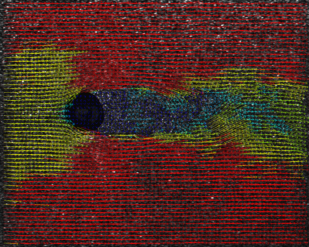 このうねうねしたところに渦が見えるよね!ベクトルはムー君の要望でカラーにしたねん!青から赤へ早くなってる。うん、線の描画にはBresenhamのアルゴリズムを(以下略 | ||