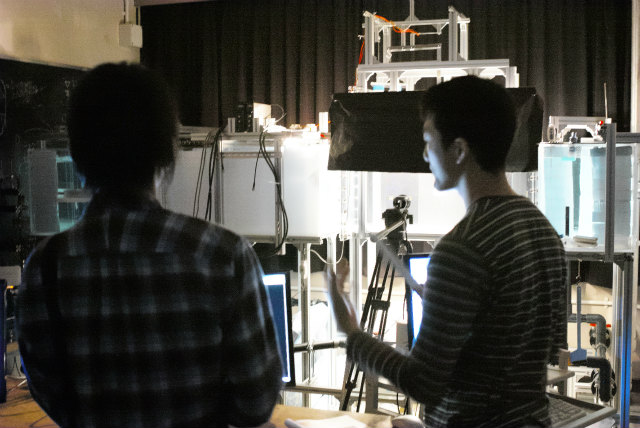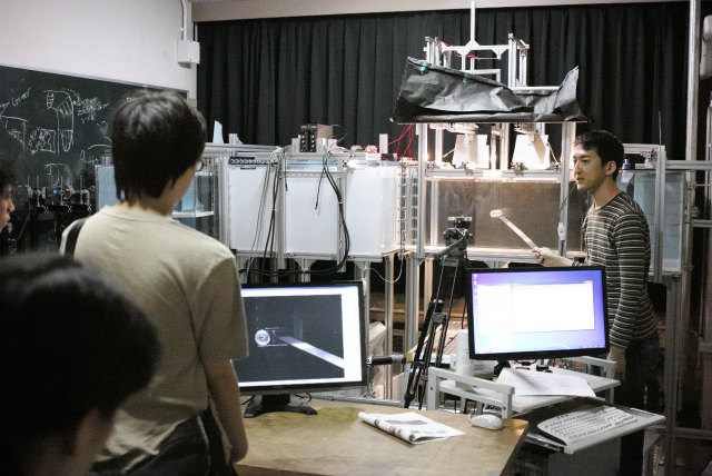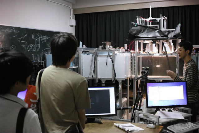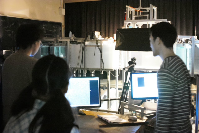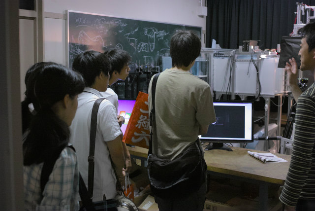 去年は村田先生と助教の人で2室公開でしたが、村田先生が学科のオープンキャンパス取りまとめのため助教の人のみ公開になりました。PIV計測の実演です。特に2日目に台風接近でしたが、結局2日間の総数で昨年より多い参加人数となりました。ありがたいことに年々確実に増えています。撮影は主にShogo。 |