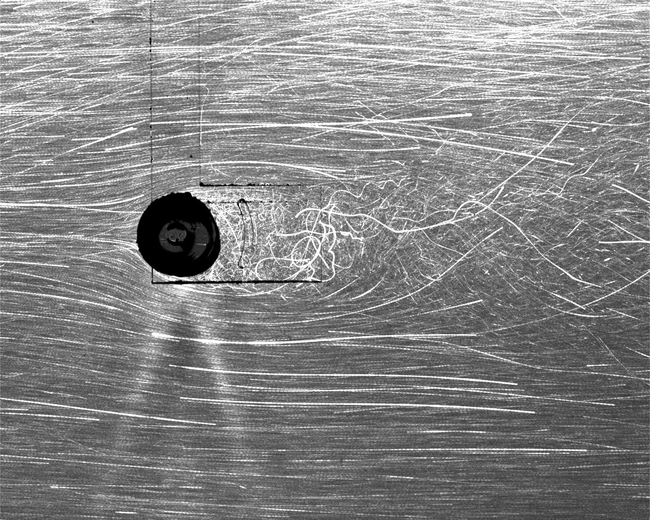 よどみ点とか剥離点とかたまりませんな!だいたいReynolds数は2000かな。ちょっと上の方と下の方で雰囲気違うのは照明を今はハロゲン使っているからシート光厚めで、そろそろYAGにするから(以下略 |