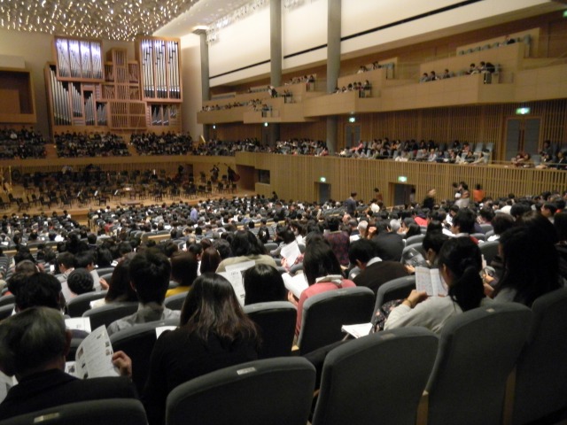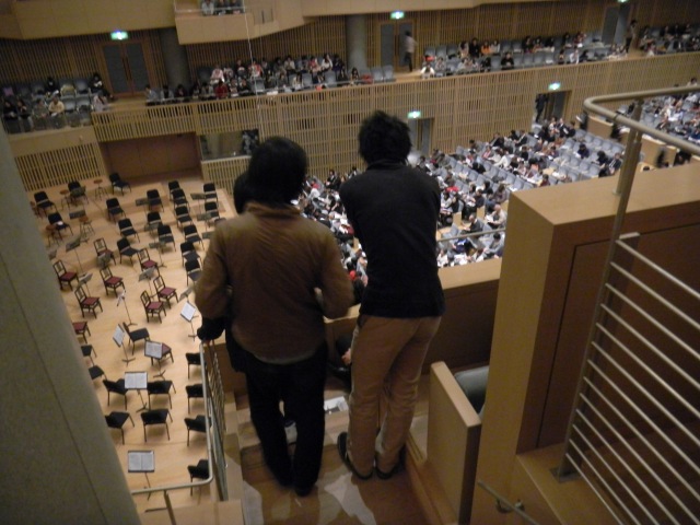 去年は6月開催の計測研音楽鑑賞を本日開催。今回も会場は京都コンサートホールです。K岡さんの所属する楽団のコンサートなので全員出席です。暗いところもしっかり撮れる高橋くんカメラで撮影です。 |