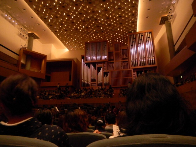 今日は計測研恒例,音楽鑑賞の日.大学から歩いて10分くらいのところにある京都コンサートホールへ行ってきました.K岡さんの所属する楽団がコンサートするのでこれは見逃せない.撮影は高橋くんカメラで. |