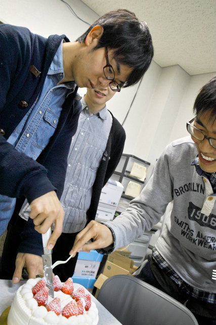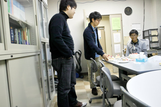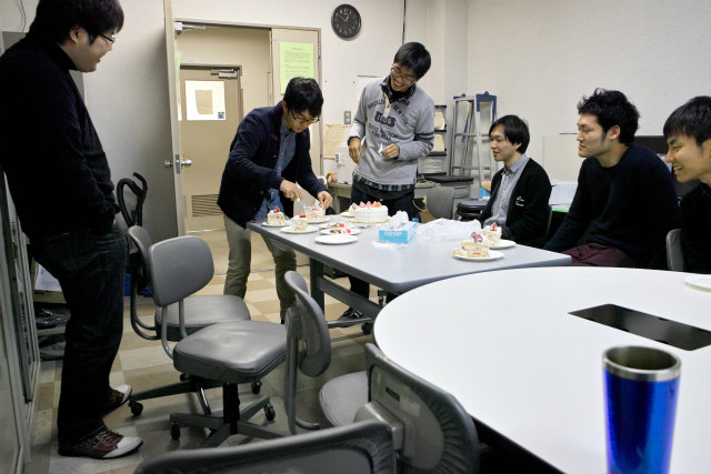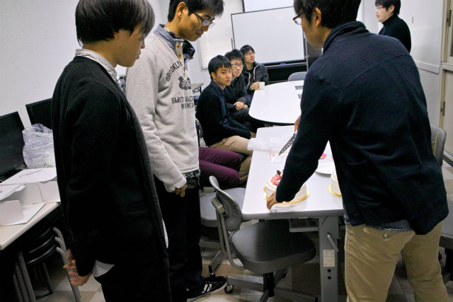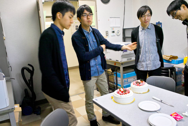 去年と同じところで、普通のクリームのケーキ2つにしました。M1は早くも就活していたり、M2もB4もだいたい結果が出揃っていたりと、なんだかいつもより前倒しです。でも余裕があるようで無いのが論文執筆だったりするので、早め早めで進めておきましょう。 |