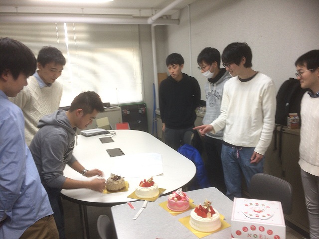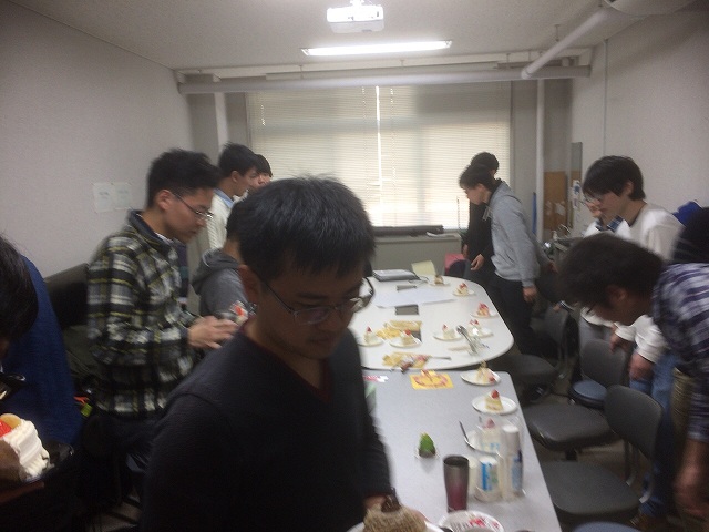 去年と同じく4つとあとは個別分。昨年とは違ってマールブランシュで購入。それはおいしいケーキでした。 来年は自作するとか助教の人が言ってました。 |