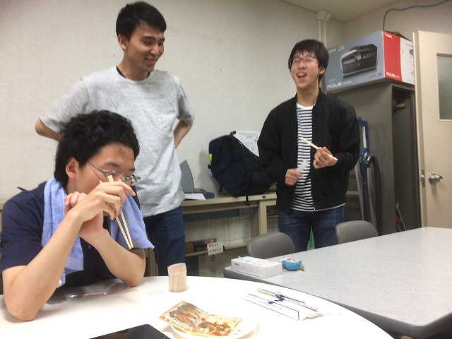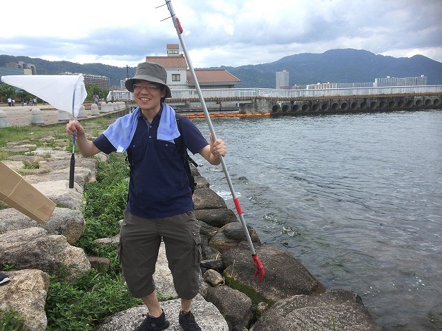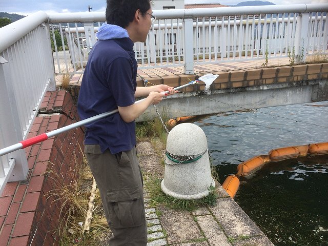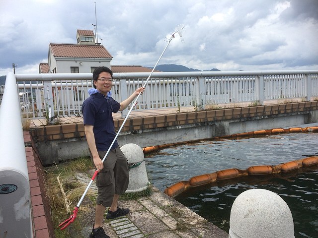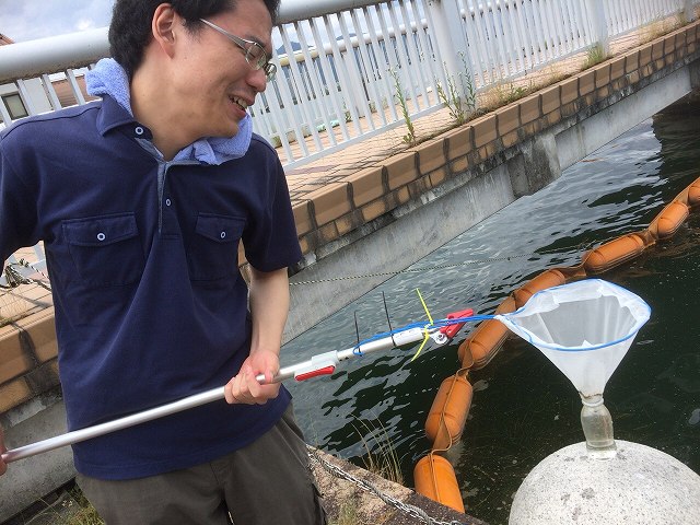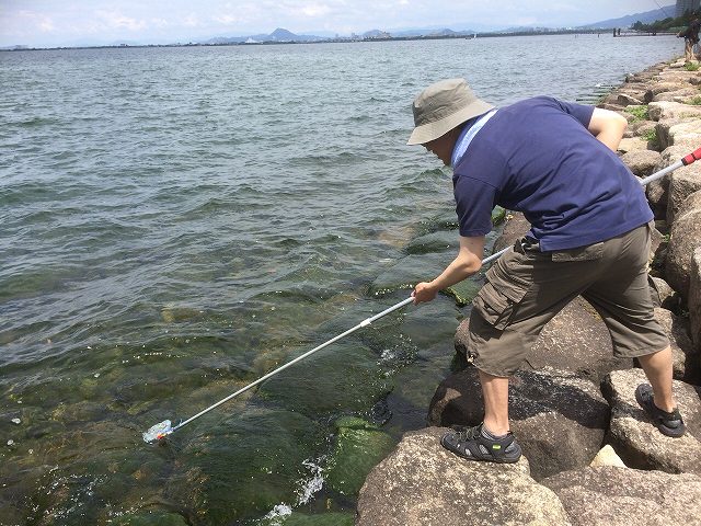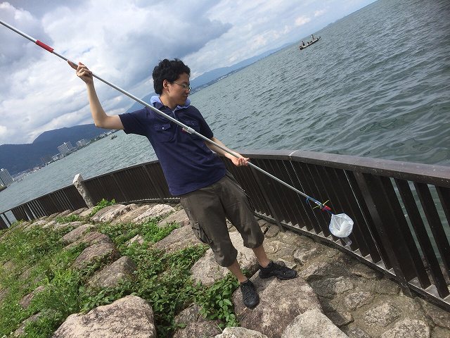 位相回復ホログラフィでプランクトン観察をすることになり,フィールドワークに琵琶湖までいってきました.M1M4さん,B4M村さん,助教の人が参加.日頃は暗闇の中で測定しているので,日焼けすることはありません. こんな風に外で研究するのも良いものです. |