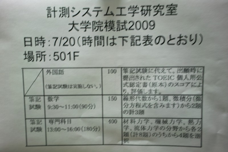 B4有志で大学院模試2009を開催!!!共感したM1有志が問題作成. |