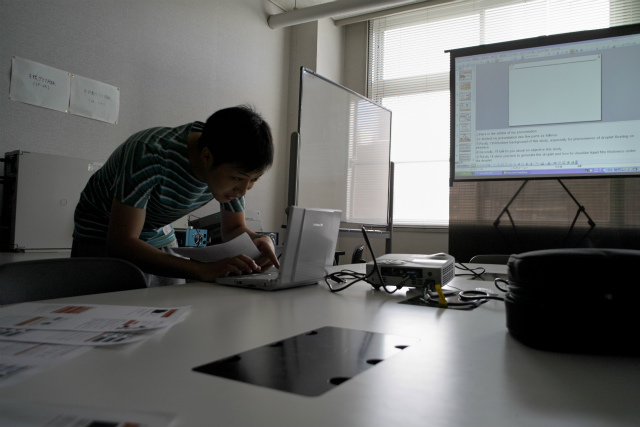 ISFV16でF木くんが発表するにあたって、英語口頭発表の練習をしました。去年英語口頭発表したN島くんとかN村くんは次の練習には参加予定。今回はM1A井くんと質問内容が容赦ない助教が参加。 |