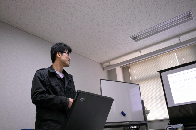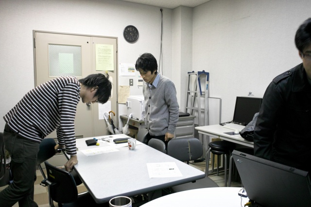 助教の人の呼びかけに主にB4が反応。修士の人達はリハなくてもプレゼンはもう慣れたもんなんですよ。やっぱりB4は初めてだし、金曜の本番前にプレゼンの流れだけでも議論しておいた方が安心ですよね。一方で、助教の人がプレゼンマウスを研究室で流行らせるのが目的でリハ開催したとか。助教の人「思った以上に話なんて伝わらないんだから、身振り手振りも交えて使えるモノは何でも利用しないと」まぁみんなやりにくそうでしたけどね。 |
