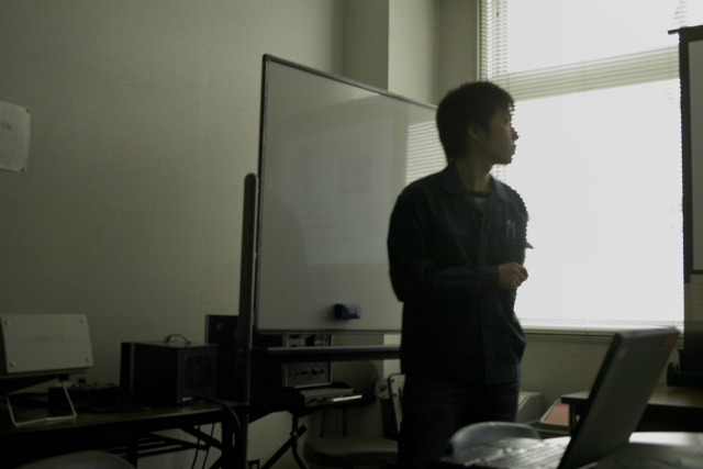 去年から助教一押しのプレゼンマウスは1年経ってすっかり研究室に定着しました!今日は助教の人のダメだし付きリハーサル。助教曰く、「ぜんぜん4月から今までやったことが伝わらん!アッピールが足らなーい」だそうです。金曜までにアッピール足してください。 |