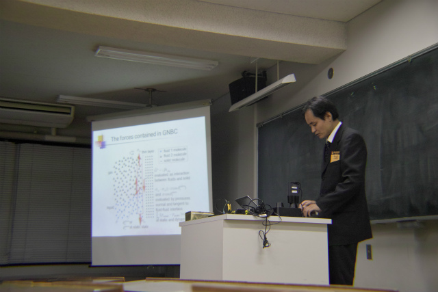 関西大学 山本 恭史 准教授(フォーラム) 「Front-tracking法による移動接触線問題の数値表現」 | ||