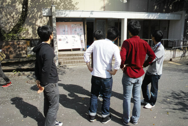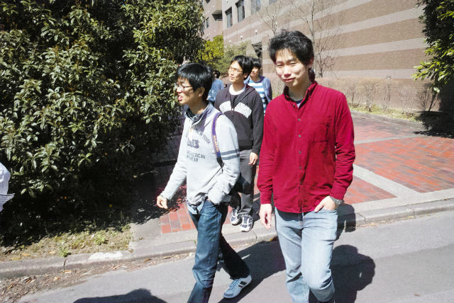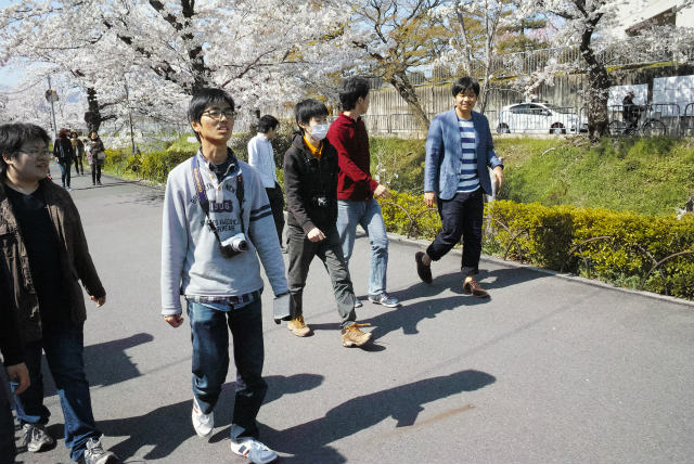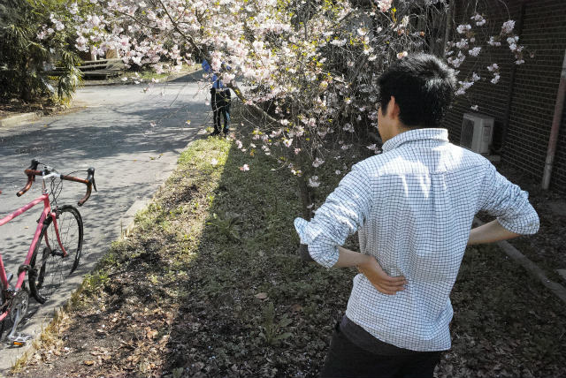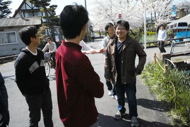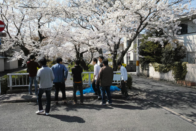 去年からちょうど一年。桜花は今日がピークですね。ずいぶん暖かくて、汗ばむ陽気。去年の寒くて風が強い日ではありません。しかし、やっぱり週末は雨で、来週も降ったりやんだり。昨年だとそろそろ最終面接だった就活は、エントリーシート提出とかの段階です。あと、秋山研からTくんが今日からM1として合流しました。 |