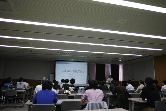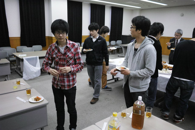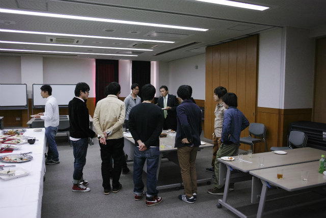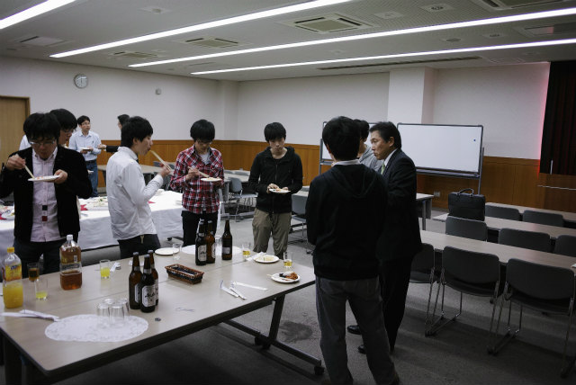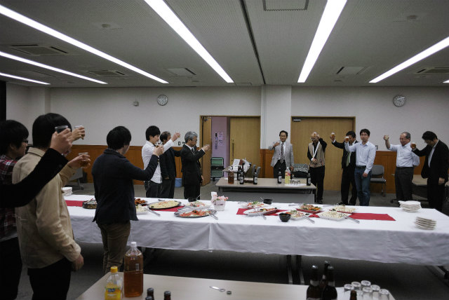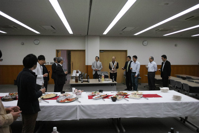 一昨年同様4月開催でした。会場は総合研究棟多目的室です。村田先生は会計を担当しています。助教の人は監査です。総会の後は講演会と懇親会です。講演会は2題目。 題目 エネルギーを取巻く環境と自動車用エンジンの課題と対応 講師 松田 喜彦 氏 (アイシン精機株式会社 専務役員) 題目 エナジーハーベスティング − 環境振動発電技術の現状とこれから 講師 増田 新 氏 (京都工芸繊維大学 ものづくり教育研究支援センター 教授)