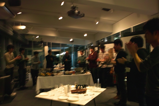去年は学部生5名,修士1回生4名で、今年は4学部生7名,修士1回生4名が計測研に進学しました。そしてついに、今年からものづくり工場の川崎先生に参加いただけるようになりました。退職された高倉先生の川崎さん研究室飲み会招待枠をゲット!会場は初めてとなるプラザKITです。照明がオシャレすぎてカメラにはしんどい場所です。 |