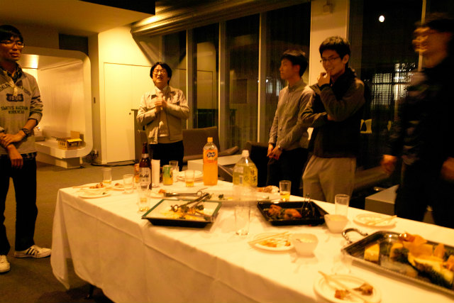 去年は学部生4名,修士1回生4名で、今年は学部生6名,修士1回生2名が計測研に進学しました。今年もものづくり教育支援センターの川崎さんに参加頂けました。会場は一昨年ぶりにプラザKITです。 |