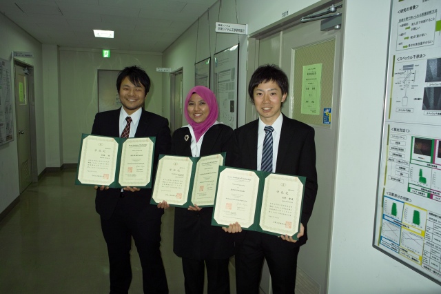 去年は修士2名,学部5名でしたが,今年は博士1名,修士3名,学部7名が卒業しました. |