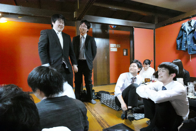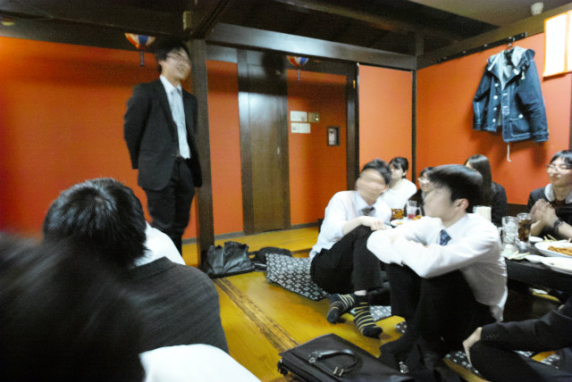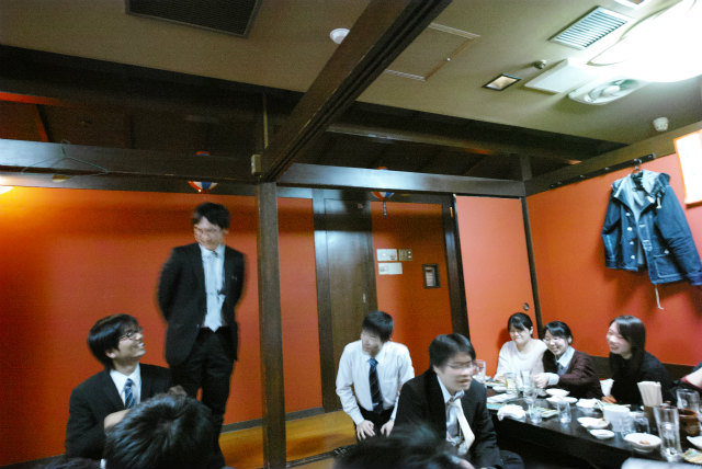 去年は修士4名,学部6名が卒業でしたが,今年は修士2名,学部4名が卒業しました.会場は今年も烏丸御池.得難いキャラが卒業・修了してしまうなぁと思ったら,なにやら新キャラが生まれてしまいました. |