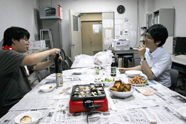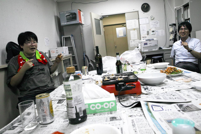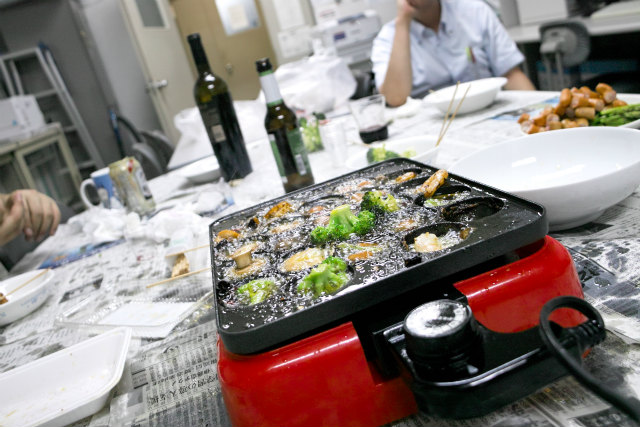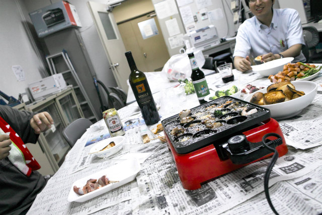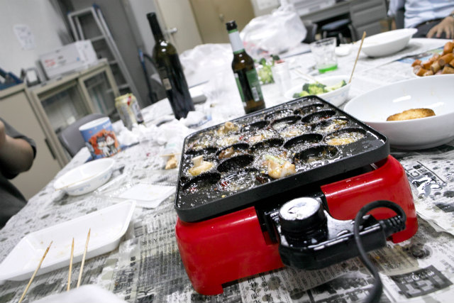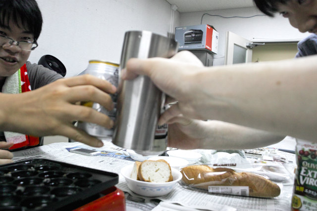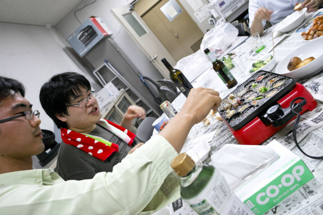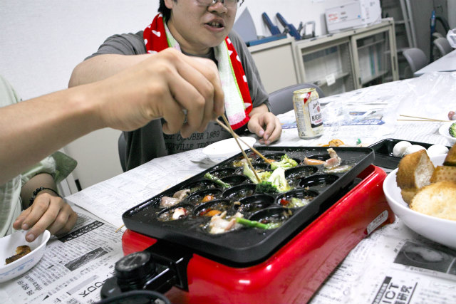 M2は就活終わったので,先日から準備してきたタコパを開催.これから本格的にタコパかと思いましたが,アヒージョに.Kくんは腹痛で不参加. |