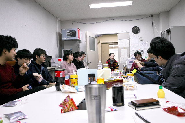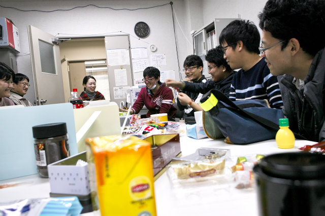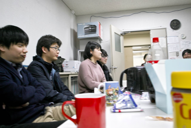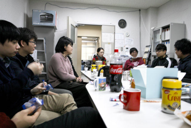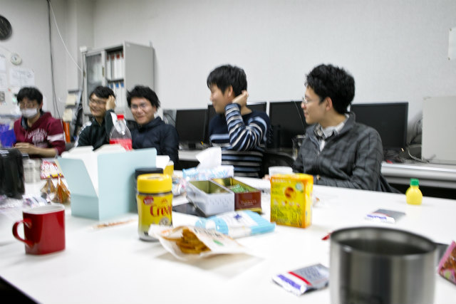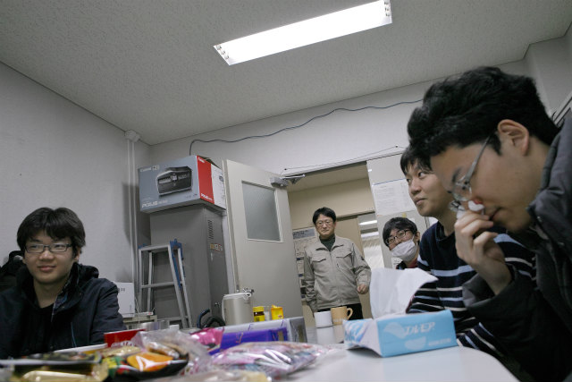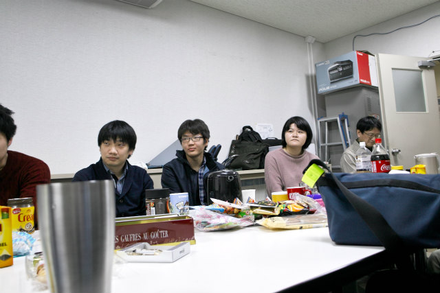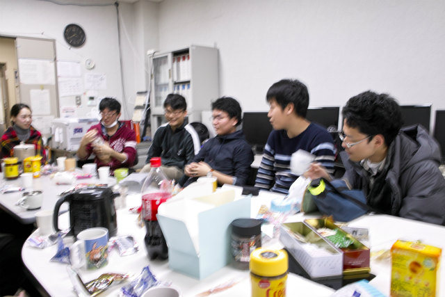 ひさしぶりにA野くんが研究室に戻ってきたので茶話会を開催.春から新しい進路ということで,去年の春から今日までのことをお互いにいろいろと話が出来ました.元気でなによりです. |