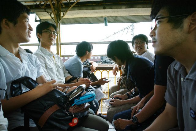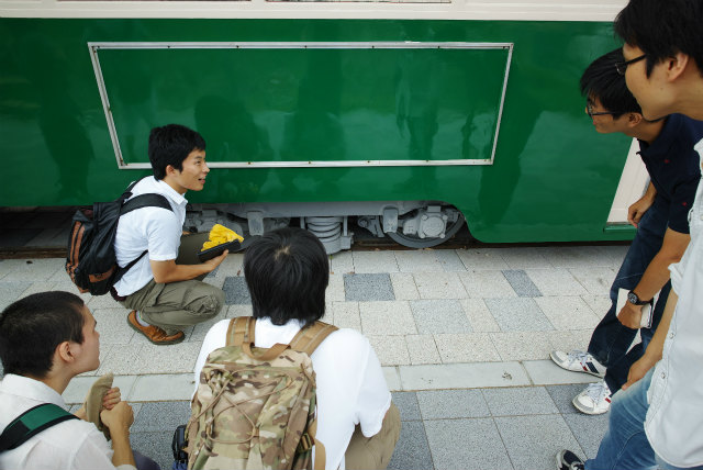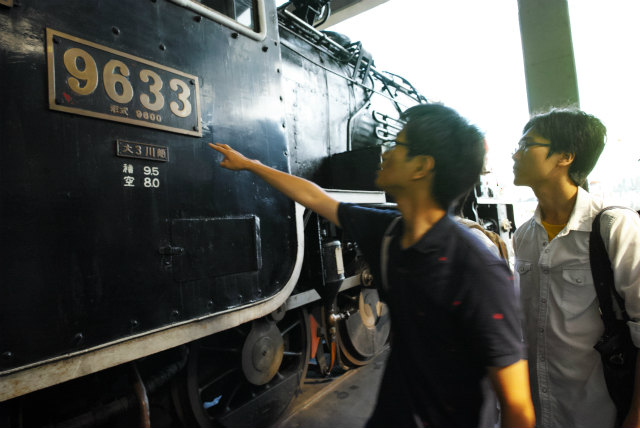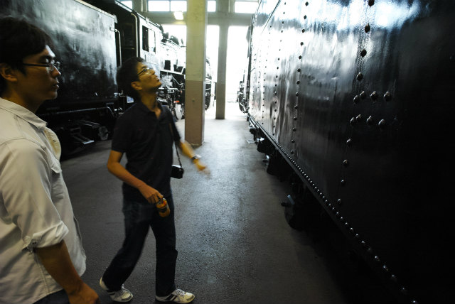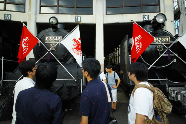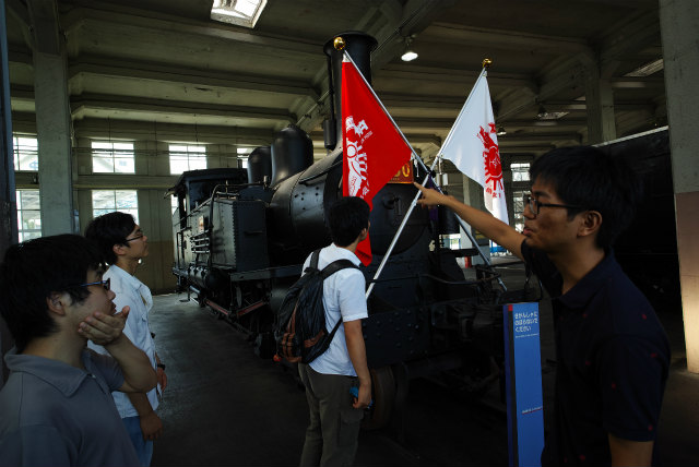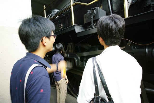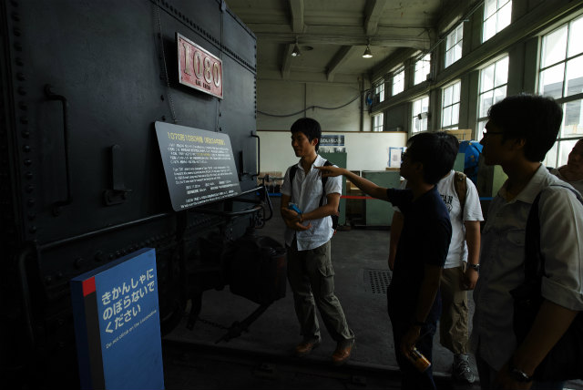 今月30日で梅小路蒸気機関車館が閉館します.もう1つ,計測研の鉄(乗る,撮る,作る),Shogoが今年度で修了してしまいます.このタイミングを活かすため,計測研の遠足で梅小路にいきました.やっぱり説明あるのとないのとで全然違います.それにしても,電気制御無しの機械制御だけというのは間近で見るとものすごいモノでした.さて来年拡張オープンしたときには誰か説明できる人が居ればいいのですが. |