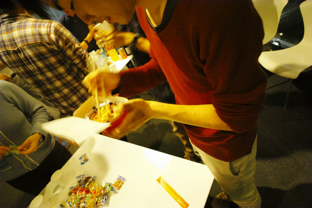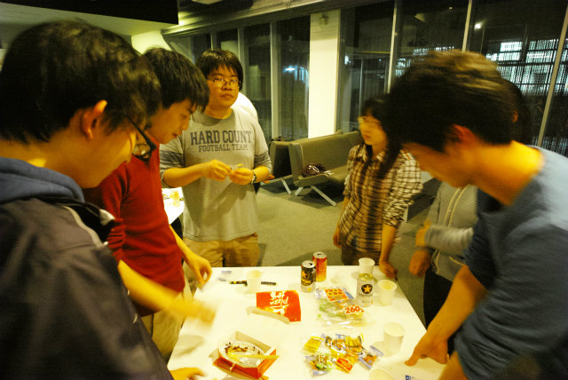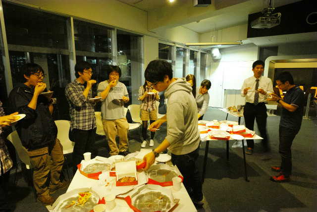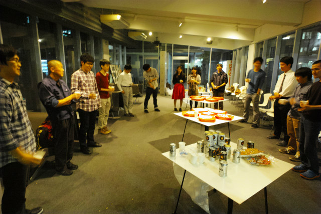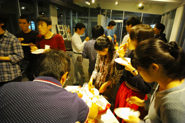 去年に続いて,修士から計測研に新たなメンバー.徳山工専から合流のHくんの歓迎会です.今回は久しぶりにプラザKITが会場です.もう先月末の卒業式前からみんなと研究始めているので,Hくんはすっかりおなじみです. |