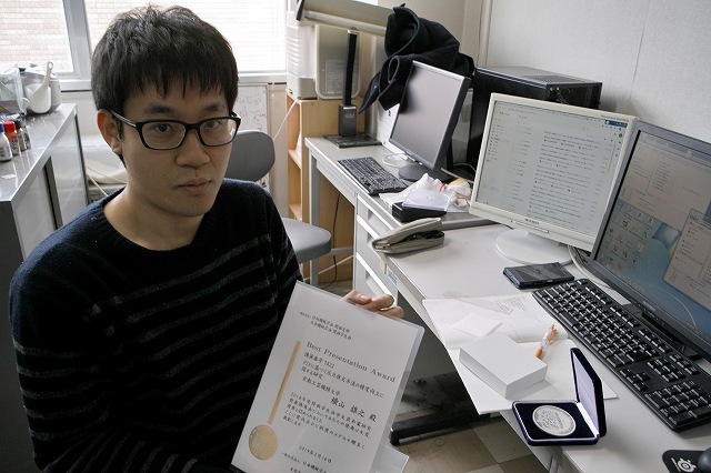 3月に開催された日本機械学会 関西学生会平成30年度学生員卒業研究発表講演会で講演を行ったB4の横山さんが,去年に続いてBPAを受賞しました. 題目は流体計測の研究で「PIV に基づく圧力推定手法の精度向上に関する研究」で受賞です.B4が5人発表して、切磋琢磨した結果2人受賞です.ほかの3人も2人に対して甲乙つけがたいレベルなので、修士以降が楽しみ. |